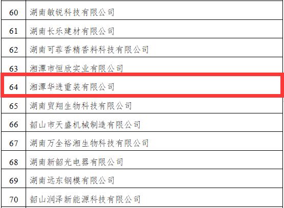 根據(jù)《湖南省中小企業(yè)技術(shù)創(chuàng)新“破零倍增”三年行動(dòng)計(jì)劃(2020-2022)》(湘工信中小發(fā)展〔2020〕151號)精神,經(jīng)企業(yè)自愿申報(bào),市縣工信部門推薦,《全省中小企業(yè)技術(shù)創(chuàng)新“破零倍增”行動(dòng)重點(diǎn)企業(yè)名單(2020年)》予以發(fā)布。湘潭華進(jìn)重裝有限公司等入圍行動(dòng)企業(yè)名單。