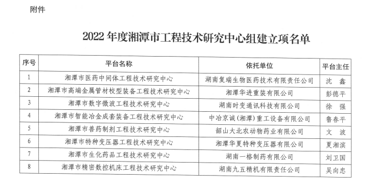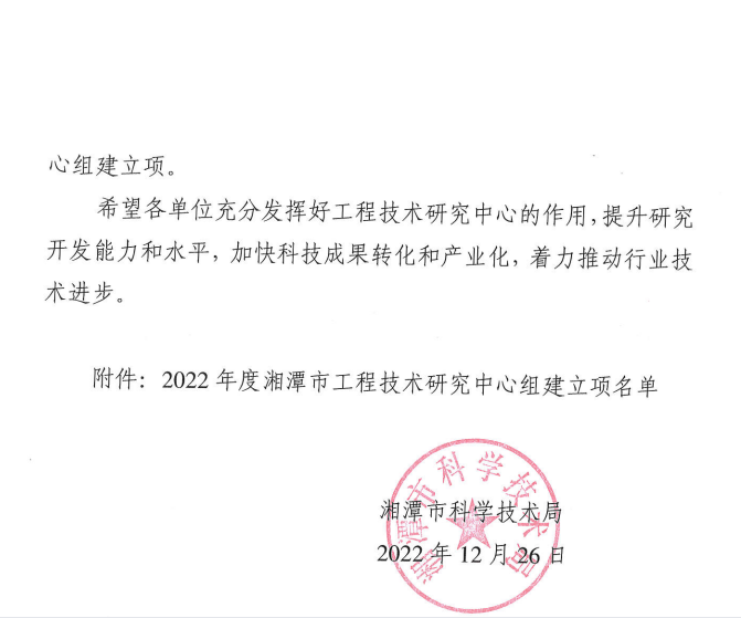 2022年12月27日,湘潭市科技局發(fā)布了關(guān)于批準(zhǔn)2022年度湘潭市工程技術(shù)研究中心組建立項(xiàng)的通知,經(jīng)申報(bào)推薦、形式審查、專家評(píng)審、現(xiàn)場(chǎng)考察、局黨組會(huì)議審定和公示等程序,決定批準(zhǔn)湘潭華進(jìn)重裝有限公司等8家湘潭市工程技術(shù)研究中心組建立項(xiàng)。