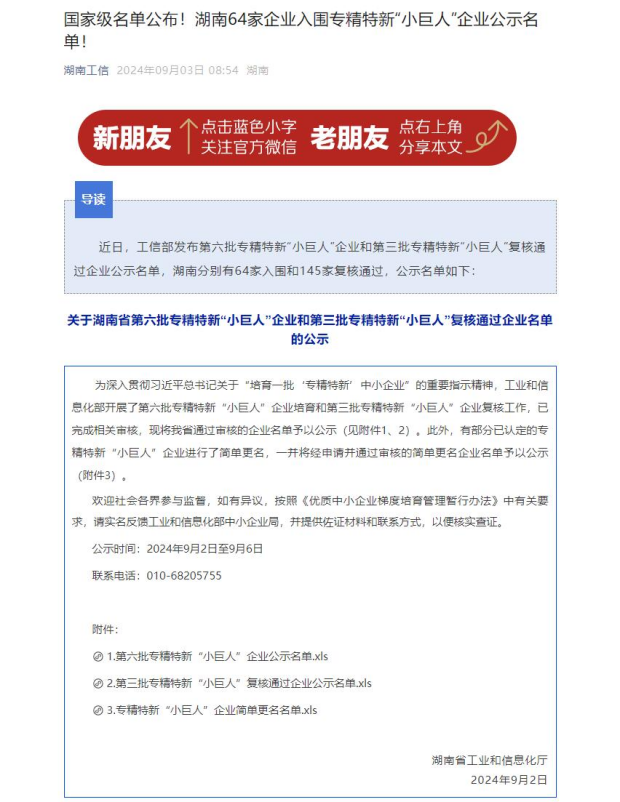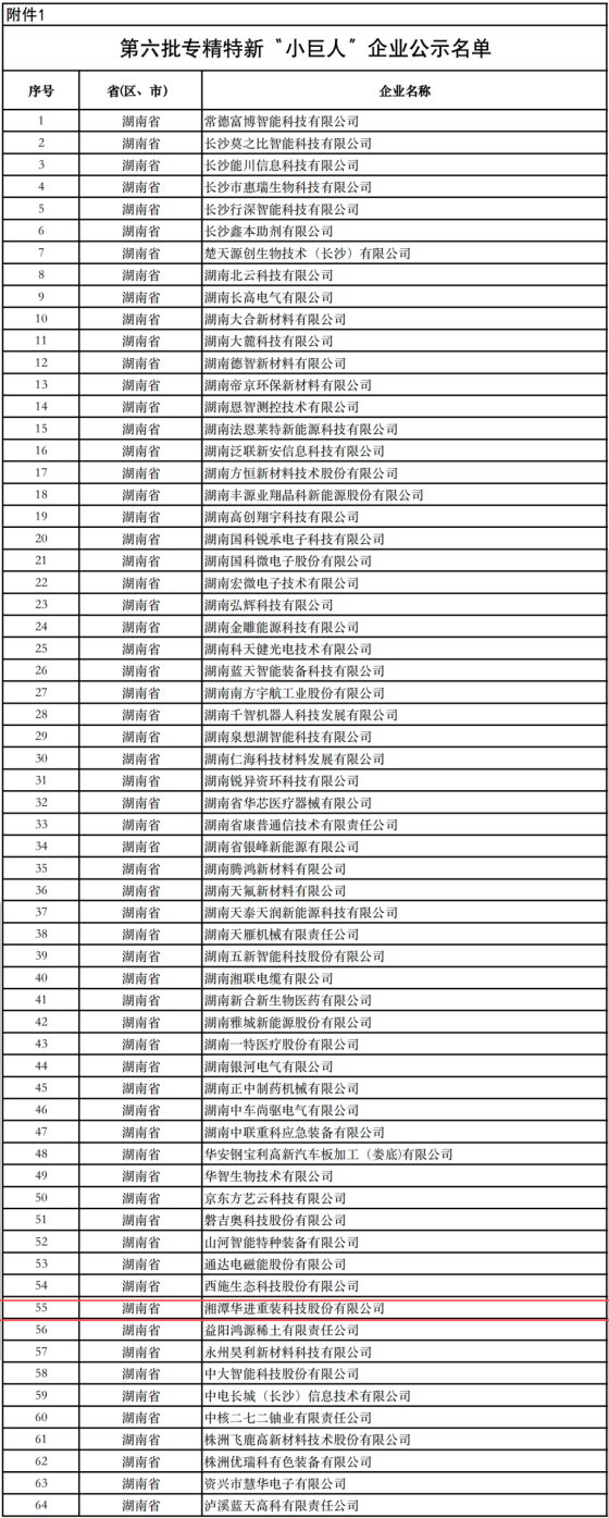 近日,第六批國家級專精特新“小巨人”企業(yè)公示名單正式發(fā)布,全國總計3012家企業(yè)成功入選,湖南省共有64家入選。其中,華進重裝憑借其在高端金屬管材制管裝備技術(shù)領域的卓越表現(xiàn)和創(chuàng)新能力,成功入圍2024年工信部專精特新“小巨人”企業(yè)。