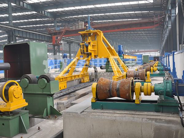 鋼管機械擴徑機是大口徑直縫埋弧焊管生產(chǎn)過程中的關(guān)鍵裝備。它位于鋼管內(nèi)、外焊和X光檢查、超聲探傷之后,水壓試驗機之前。